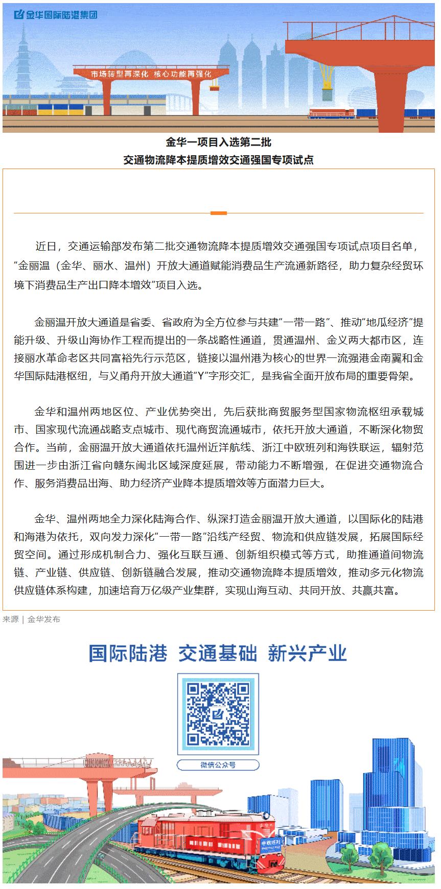 金華一項(xiàng)目入選第二批交通物流降本提質(zhì)增效交通強(qiáng)國(guó)專(zhuān)項(xiàng)試點(diǎn)