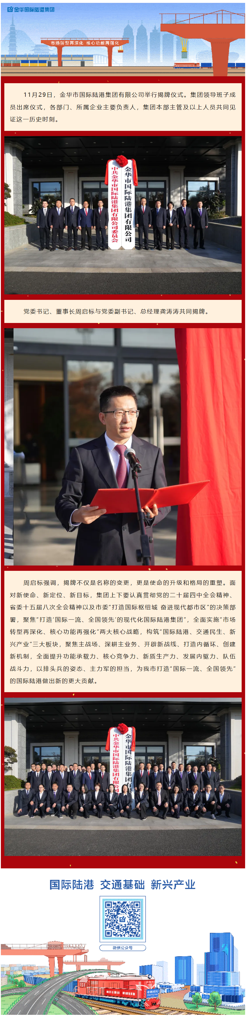 金華市國(guó)際陸港集團(tuán)有限公司揭牌!